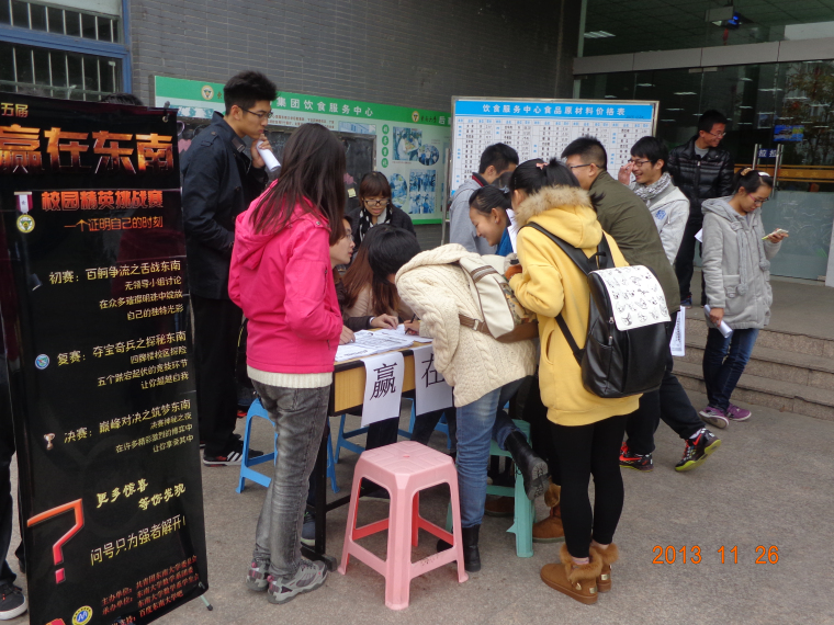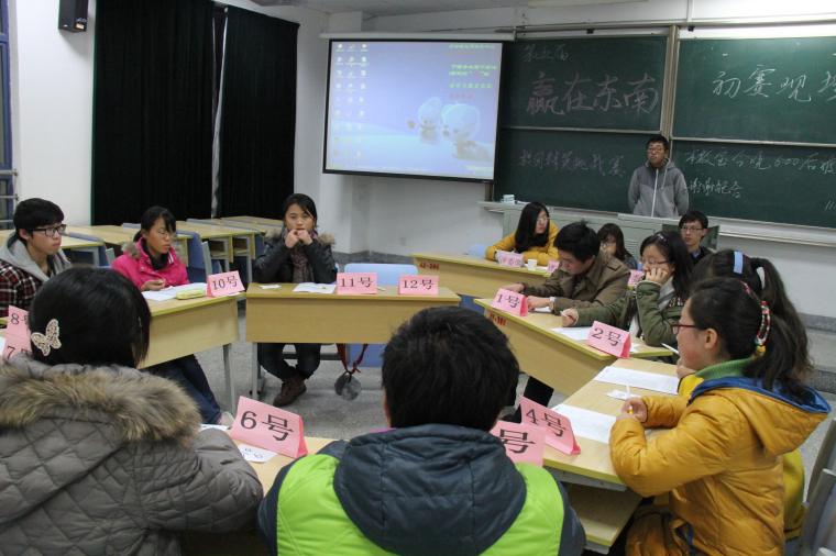 | 由共青团东南大学委员会主办、数学系团委承办的第五届“赢在东南”校园精英挑战赛,于2013年11月28日正式拉开帷幕,经过将近一个月的角逐,12月12日晚6:30,在圆形报告厅一楼成功举办决赛,最终活力四射的四匹狼斩获冠军,精卫、4ever one分别获得亚军和季军,而Elivictor、水果忍者获得了优胜奖。数学系党委书记李涛老师、计算机软件学院党委副书记裴峰老师、人文学院党委副书记何熠老师、艺术学院党委副书记徐进老师、以及数学系党委副书记曹海燕老师出席并为决赛担任评委老师。此外,我们还有幸邀请到了来自南京林业大学就业办的陈养彬主任和理学院的师生代表一齐参加了本场决赛。 “赢在东南”来源于央视节目“赢在中国”,旨在东南大学的校园内提供一个大学生展示自我、挑战自我的平台,发掘自身潜力,发挥团队配合、相互协作的价值,借此品味人生、感悟成长,实现梦想,获取成功。自2007年至今“赢在东南”已成功举办五届,且之前的每届赢在东南均被评为当年校园文化节“校园十佳精品活动”,已成为数学系的一大品牌文化盛典。 今年的“赢在东南”校园精英挑战赛共分为初赛、复赛、决赛三个环节。初赛舌战东南通过无领导小组讨论的形式,从前期报名的近300名同学中,经过激烈的竞争,筛选出32名选手随机分成8组进入复赛的角逐。12月4日晚,复赛夺宝奇兵之探秘东南第一环节破冰之旅成功在图书馆数学系第二报告厅举行。当晚的团队风采展示、暗夜骑士、鸡蛋撞地球三个评比环节设计让各小组成员加深了解,配合也越来越默契,为复赛的校外部分奠定了良好的基础。 12月7日,各小组在四牌楼校区附近展开了复赛校外赛的比拼,虽然当天早上雾霾天气较严重,但各支队伍参赛热情依旧高涨。校园景点的探秘、碎片拼图、教陌生人唱校歌,以及从拼图开始的以物换物环节,充分考验了各个参赛团队全方位的综合能力。紧张的一天校外复赛后,5支队伍成功挺进决赛。 12月12日,5个从复赛中脱颖而出的队伍正式进入决赛筑梦东南的对决。第一环节团队风采展示,各支队伍以独特的方式展现他们的自信与活力,也展示了他们一路走来的感悟与成长;第二环节谢天谢地你来啦,由各队根据现场抽取的题目,通过情景剧的形式,针对工作人员抛出的情景模拟问题进行即兴表演;最后一个环节东大名片,要求选手现场展示并解说他们基于调查分析与自身感受为东大绘制的一张特色名片。 最终,四匹狼斩获冠军,精卫、4ever one分别获得亚军和季军,而Elivictor、水果忍者获得了优胜奖。数学系党委书记李涛老师对决赛进行了点评,对赢在东南活动给予了高度的肯定,同时也鼓励大学生应当努力提高自身综合素质,通过活动展现自我,锻炼自我,尤其强调了每一名东大人其实才是东大最好的名片! 第五届赢在东南校园精英挑战赛为广大参与者提供了一个良好的平台,既能让他们将所学知识应用于实际,又能锻炼自己团队配合、沟通交流等能力,将自己打造成学习能力出众,能言善辩又善于配合的大学生。通过此次比赛,选手们既锻炼了各项能力,展示了自身风采,也收获了友谊、自信与难忘的经历。赢在东南,既圆了同学们一个成为精英的梦想,也埋下他们不断提升自己,立志为东大梦、为中国梦贡献力量的种子。 |