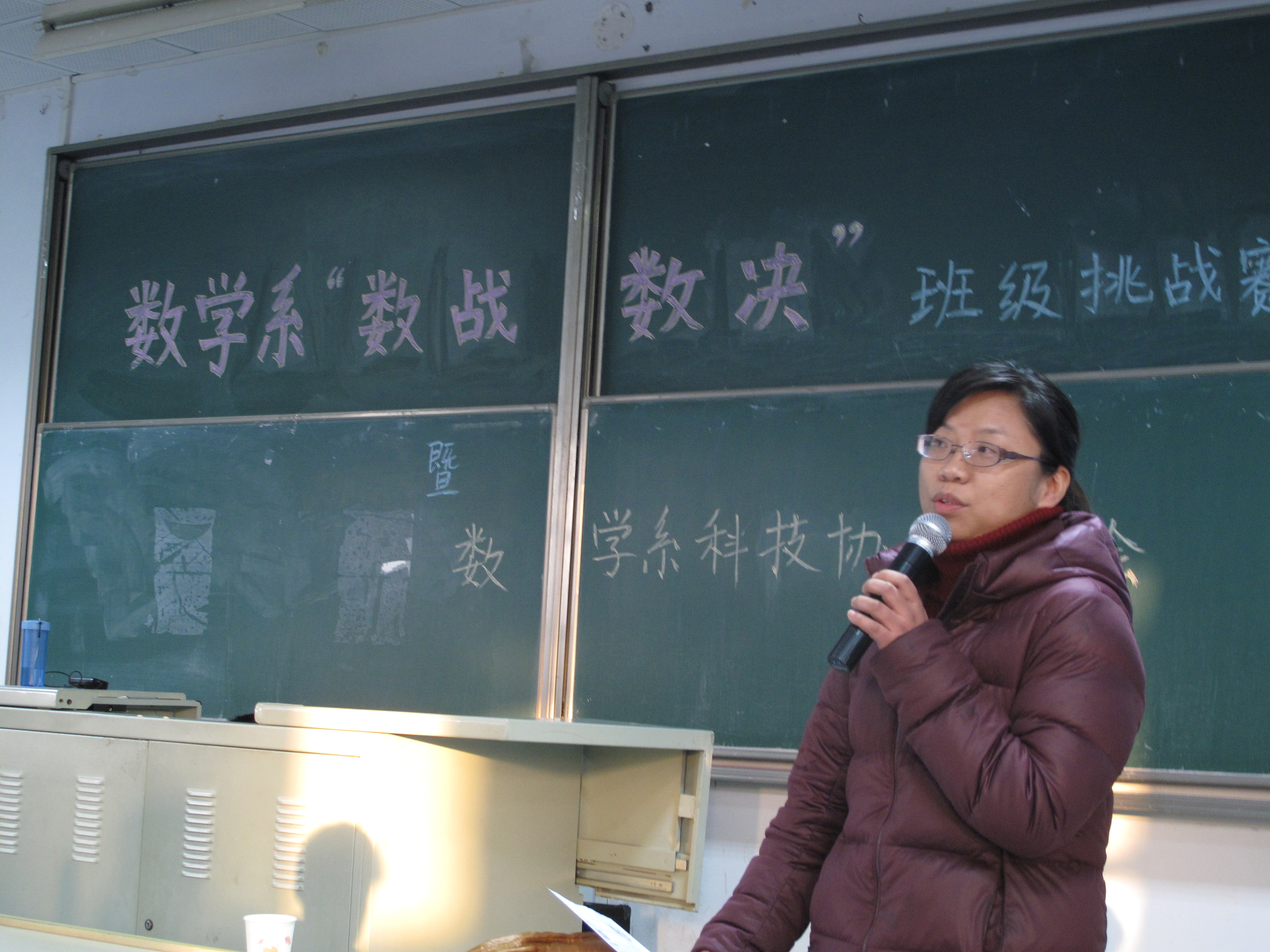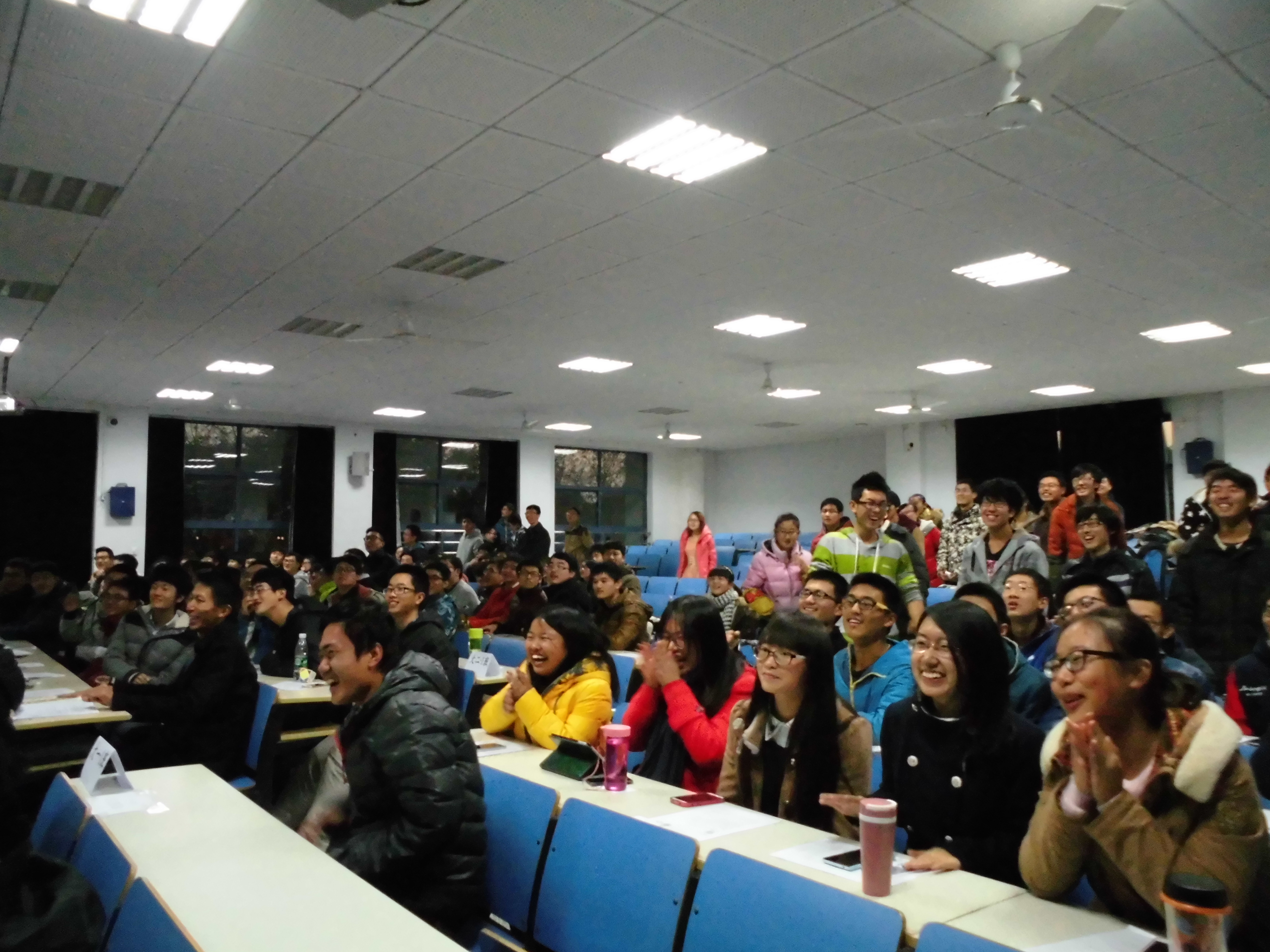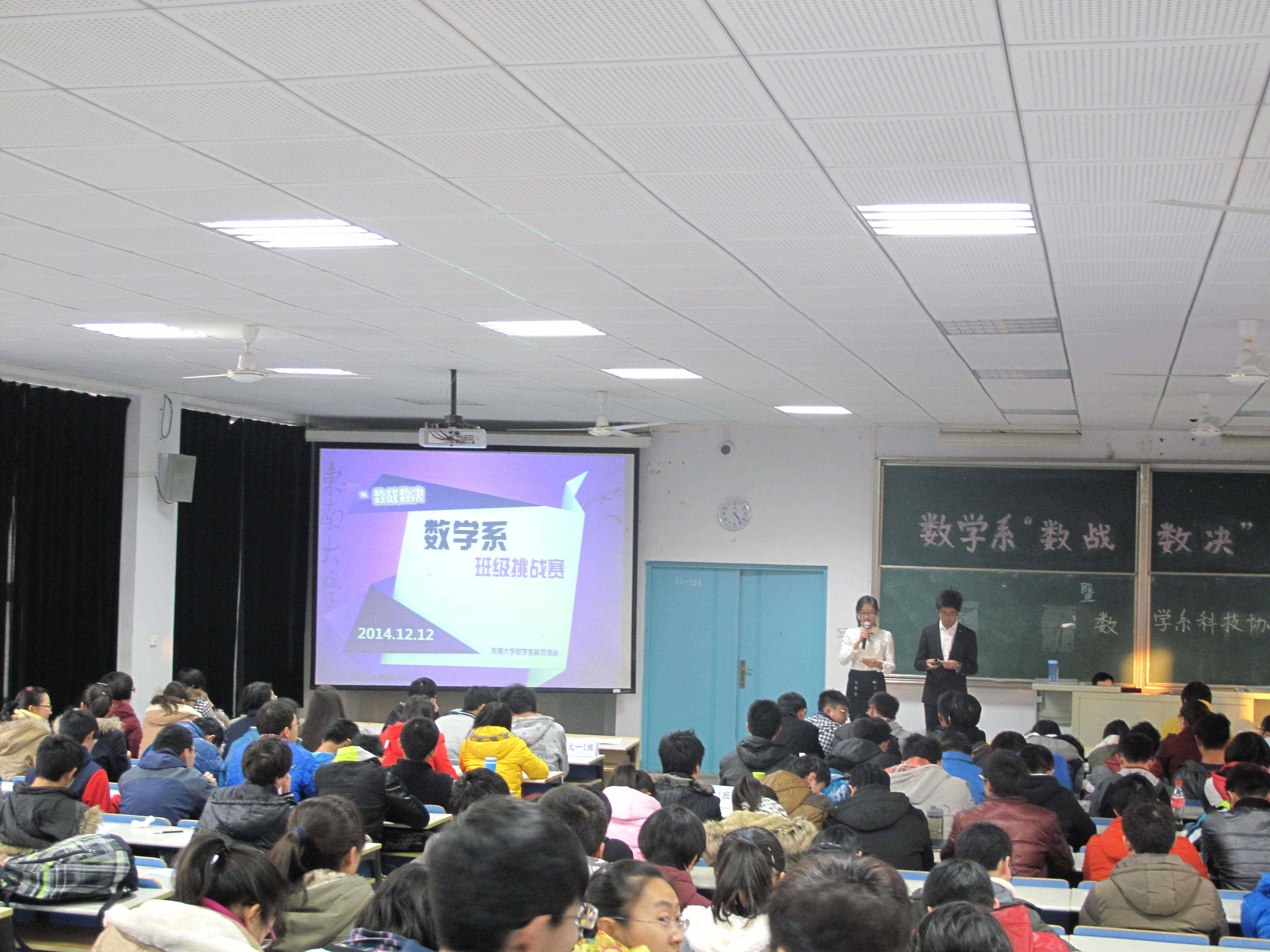 2014年12月12号下午3点50,由数学系科技协会主办的“数战数决”班级挑战赛暨2014科协发布会在J1-211圆满举行。数学系党委副书记曹海燕老师,团委书记袁煜昶老师,和辅导员王靖老师出席了本次活动。 本次活动由两部分组成。前半场由科协副主席陈康同学负责主持进行了2014科协发布会。发布会上,来自2012级的主席梁晓洁同学向我系大一大二全体同学介绍了数学系科协是什么,科协干什么,科协可以给大家带来什么等大家最关心的问题,并结合近期正在进行中的2015年校级SRTP项目申报工作对大一大二的同学们给予了许多提醒和帮助。同时晓洁作为科协代表还正式发布了数学系科协的LOGO,发布了科协资料库网盘,发布了科协的微信平台,同学们纷纷现场拿起手机扫了一下二维码,关注了科协微信平台,并对科协的诸多发布内容报以热烈的掌声。 数学系党委副书记曹海燕老师做了简短而深刻的总结发言,充分肯定了科协工作的努力和付出,对同学们提出自己可以为科协带来什么的问题,引发了同学们深深的思考。最后曹书记对所有数学学子们提出希望,希望大家都要积极培养学术创新和科技竞赛的能力,在科协搭建的师生共同探索的学术平台上实现自我的提升。 简短的发布会后,由科协主办的 “数战数决”班级挑战赛隆重开始。比赛由大一的李园哲和矫文薇两位同学主持,面向大一大二两个年级六个班全员参与,借鉴了江苏卫视“一站到底”的节目形式,开启班级车轮战,诸多数分、高代、C++等主干课知识和部分常识题瞬间让在场所有的参赛选手和观众都沸腾了起来。每题15秒的答题时间空气中充满了紧张的味道,每每一道题答对了,选手所在班级的同学都会报以最热烈的掌声和欢呼声给予支持;而每每答错了,工作人员也会用充气锤狠狠地给予当头一棒以作惩罚,现场爆发出阵阵笑声。一个半小时的激烈角逐后,070141班以明显优势获得了第一名,070143、070142分获第二名和第三名,而大二的三个班级遗憾的获得了优胜奖。团委书记袁煜昶老师现场给获奖班级的代表颁发了荣誉证书,并一起合影留念。 本次活动让同学们在认识科协、了解科协的同学,提高了自我的认知,通过轻松愉快的方式加强了专业知识的学习,同时还增强了班级的凝聚力。希望未来的道路上,数学系科协可以越来越专业越来越强大,也希望数学学子们在追求数学的旅程中,积极的投身于学术创新和科技竞赛的智慧世界里,一站到底! 通讯员:何铭 摄影:张�� |