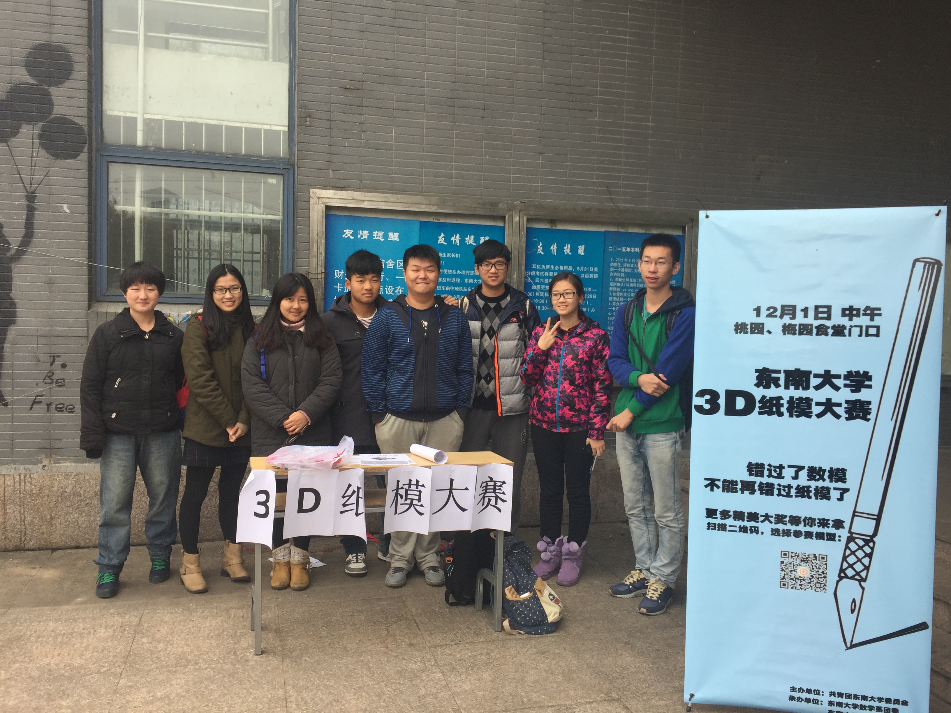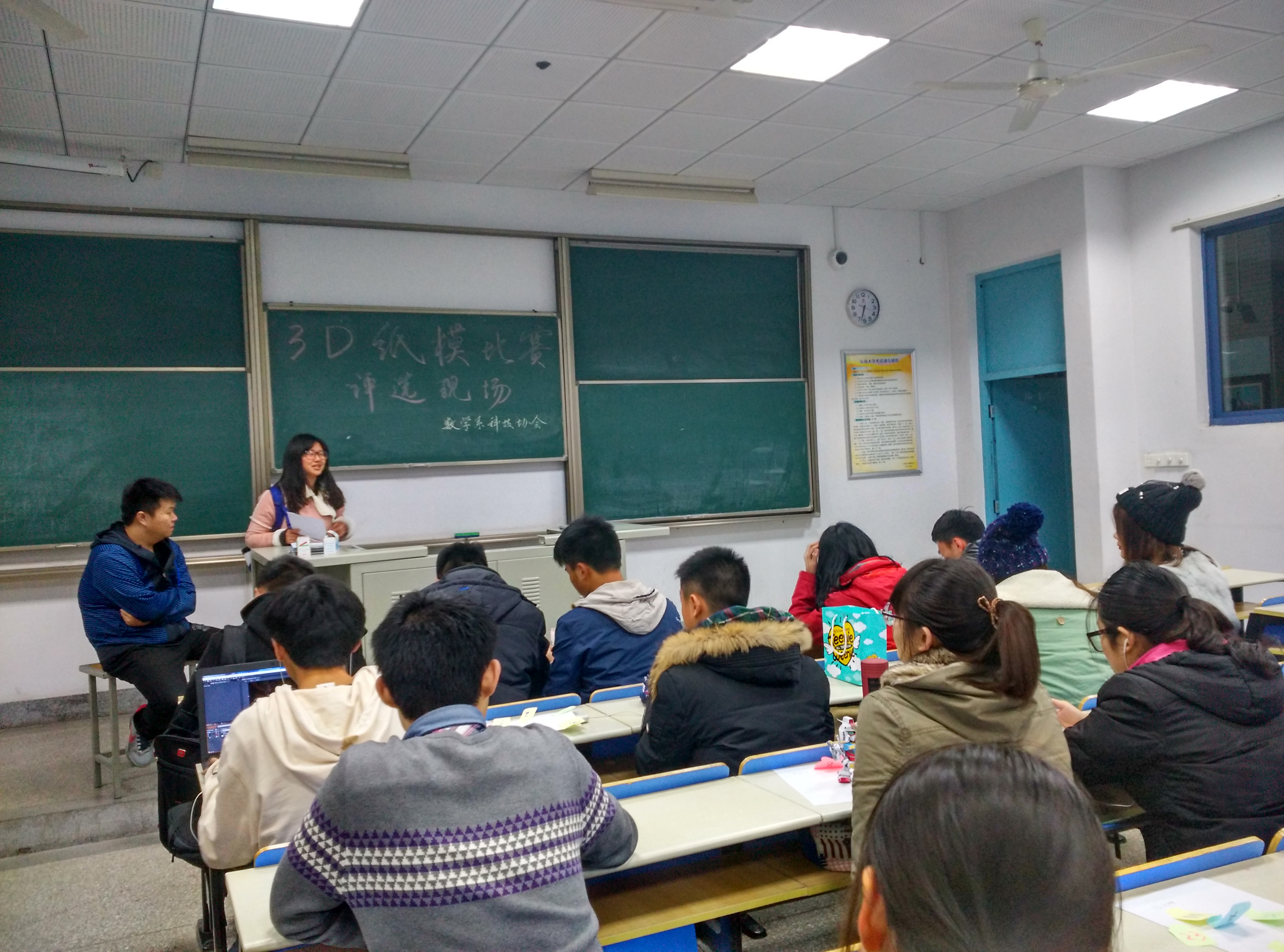 121日(周二),由数学系科协举办的第一届“3D纸模大赛”正式拉开帷幕,线上报名通道于当日零点开放后,在短短半小时里,便有将近10个小组报名成功。周二中午在梅园、桃园食堂的现场宣传中,更是吸引了一大波同学积极报名,最终我们依据报名顺序取30组。经过紧张的现场投票和为期三天微信网络投票后,随着一二三等奖的具体产生,宣告此次“3D纸模大赛”圆满落下帷幕。