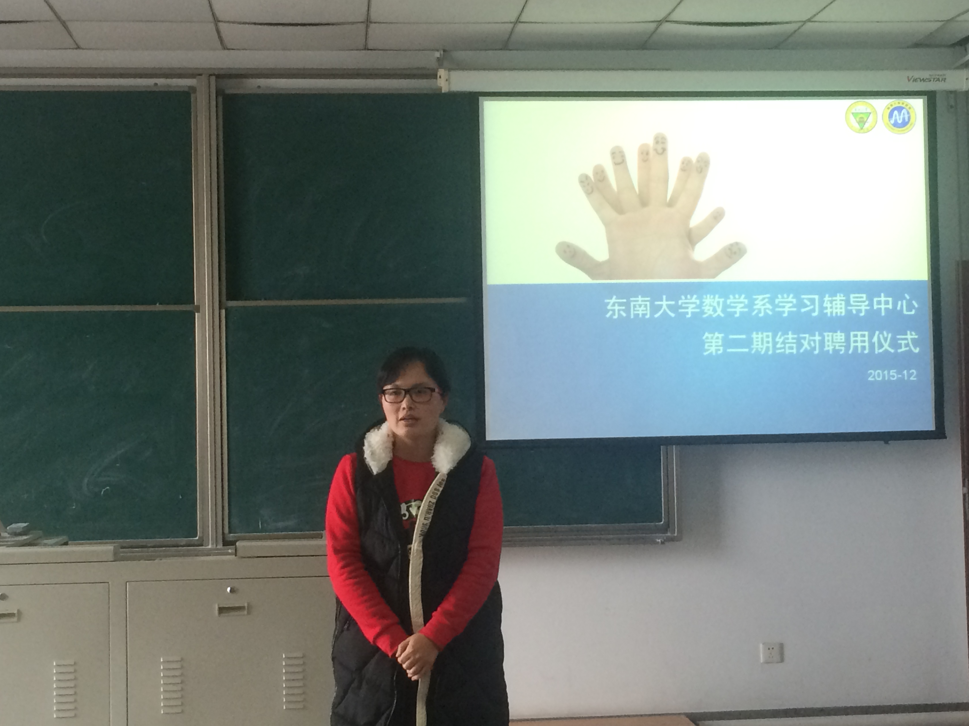 为了更好地促进我系2013级的学风建设,更好地架起学霸与学弱之间学习与情感的桥梁,数学系学习辅导中心第二期结对仪式于2015年12月24日圆满举行。数学系党委副书记曹海燕老师出席结对仪式,系团委书记、本科生第一党支部书记袁煜昶老师为13位辅导讲师颁发聘书和工作牌。 活动自今年12月正式启动,由数学系本科生第一党支部承办。期中考试以后,结合部分学生专业课成绩不是太理想的现状,正式启动了学习辅导中心第二期工程。在经过一段时间关于辅导讲师和学员的招募后,成功建立起“学优生―学困生”一助一的帮扶关系,打造“督学、助学、乐学”的帮扶平台,让每位同学都能学有所长,学有所用。 12月24日中午12时,数学系第一报告厅,学习辅导中心第二期结对仪式正式开始。会上,袁煜昶老师宣读了辅导讲师职责与学员职责,强调了辅导讲师对学员主要以陪同自习的形式开展辅导,通过自己身体力行的学习状态和方法促使学员探寻适合自己的学习方式,并确保在每次辅导过程中可以有耐心、有责任心地解答学员提出的各类相关课业问题。同时,袁老师也对大家提出了几点希望,辅导讲师应该对被帮扶同学的现状有深入的了解,对症指导;被帮扶的同学则应端正学习态度,直视自己的问题,勇于接受辅导讲师的帮助。 最后,袁煜昶老师为13名辅导讲师佩戴了工作牌,并颁发聘书。这是对辅导讲师工作职责的认可,更是一种激励,希望辅导讲师们能够担起这一职位所赋予的责任,用心、细心、耐心地完成这一任务。也希望通过我系学习辅导中心的共同努力,可以实现讲师与学员的共同进步与共同成长。(袁煜昶) |