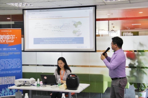经过热烈的讨论互动,孙经理及相关负责人带领同学参观了美库尔的工作环境,了解从技术到分析等不同项目组的工作内容,体验理论与实践相结合的工作转变。