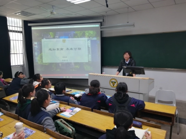 参观结束后,东南大学师生与新淮高中师生在中山院面对面地进行了交流,曹海燕副书记主持了座谈会并作了题为《感知东南,未来可期》的讲座。讲座中,曹老师介绍了东南大学的历史变革,教学科研、人才培养以及招生途径等概况,带同学们探讨了成长的动力,引导中学生树立正确的价值观和终身学习的观念,对高考填报志愿提出了建议,并期待在东南大学与同学们再次相遇。两位生源地学生与大家进行了面对面交流,热情地回答了学弟学妹的问题。