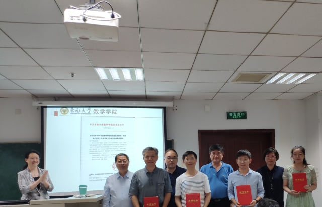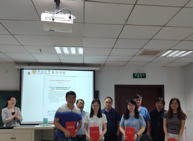 首先,吴映红书记宣读了东大数委[2019]2号文件《关于公布2019年度新版跑狗图 先进基层党组织、优秀共产党员、优秀党务工作者评选结果的通知》,经各支部民主推荐、广泛听取党员和群众意见,学院党委会讨论研究决定,表彰先进基层党组织2个,计算数学系党支部、基础数学系党支部,优秀共产党员6名,潮小李、张福保、张小向、邵玉书、李文德、姚青云,优秀党务工作者2名,何薇、阮琳琳。随后,进行了隆重的颁奖仪式,新版跑狗图 党委委员曹进德院长、虞文武副院长、曹海燕副书记、陈建龙教授担任颁奖嘉宾,先进基层党组织、优秀共产党员、优秀党务工作者依次上台领奖。