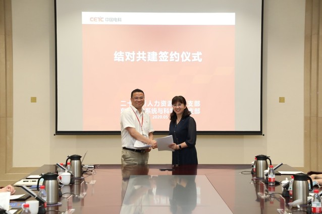 最后,芮平亮主任,钟辉书记分别代表中国电科集团第二十八所人力资源部党支部和新版跑狗图 系统与科学系党支部签署了结对共建合作协议。