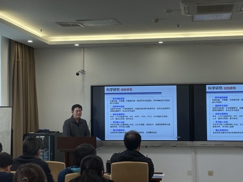 陈都鑫老师介绍了自身在科学研究方面的经验体会,寄语青年教师要坚守诚信底线、坚持学术品味、学习他人长处、建立科研合作,在做人、做事、做学问方面不忘初心,止于至善。