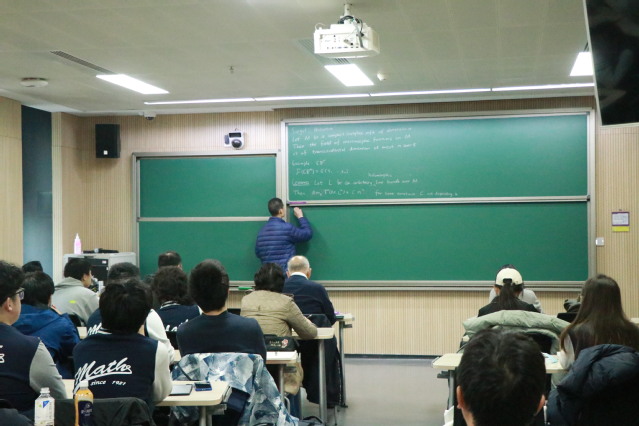 随后学院师生参与了求真书院的院长讨论班,旁听了清华大学2021级本科生、2023年特等奖奖学金获得者林奕然题为《complex manifolds and algebraic varieties(II)----coherent sheaf and GAGA principle》的专题报告,对微分和代数几何中的siegel‘s theorem等作了探讨。