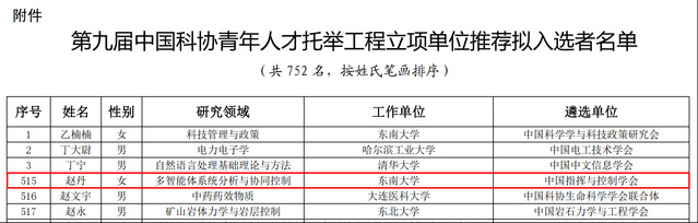 近日,中国科协公布了第九届“中国科协青年人才托举工程”入选名单,2025年六合彩跑狗图 至善博士后赵丹(合作导师:温广辉教授)成功入选。