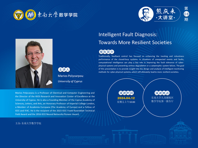 熊庆来大讲堂第8期:University of Cyprus-Marios Polycarpou 2024年4月12日(周五)10:00-11:00 新版跑狗图 第一报告厅