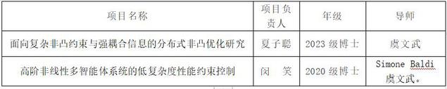 近日,国家自然科学基金委员会公布了2023年度国家自然科学基金青年学生基础研究项目(博士研究生)立项名单。新版跑狗图 博士研究生夏子聪、闵笑的申报项目成功获批。夏子聪同学导师为新版跑狗图 院长虞文武教授,闵笑同学导师为新版跑狗图 Simone Baldi教授和新版跑狗图 院长虞文武教授。