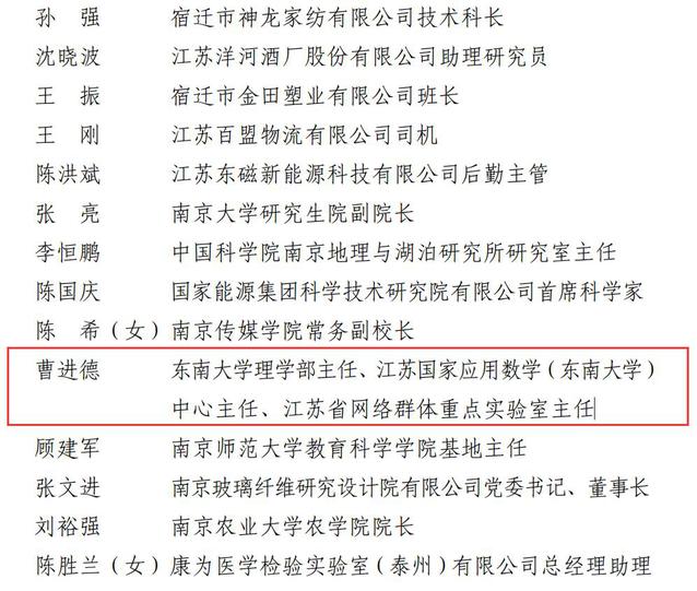 曹进德教授是首届全国创新争先奖获得者、首届江苏省十佳研究生导师、首届江苏省十佳研究生导师团队(提名),享受国务院政府特殊津贴、紫金山英才A类人才。现为东南大学首席教授、理学部主任、亚洲计算智能学会主席、江苏国家应用数学(东南大学)中心主任、江苏省网络群体智能重点实验室主任。曹进德教授面向世界科学前沿和国家战略需求,在神经网络数学理论、复杂动态网络、信息系统数学建模、群智协同优化控制等方面开展了系统深入的研究,取得多项创新成果,研究工作得到国内外同行高度肯定和正面评价。