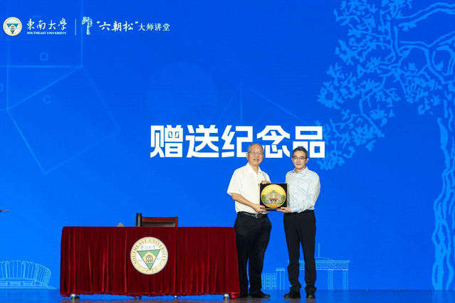 讲座结束后,钟文琪代表东南大学向丘成桐赠送了纪念品,学生代表献花,表达东大师生们的崇高敬意。