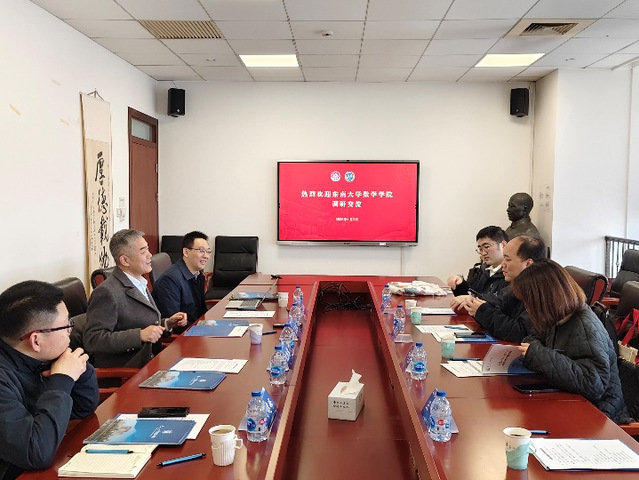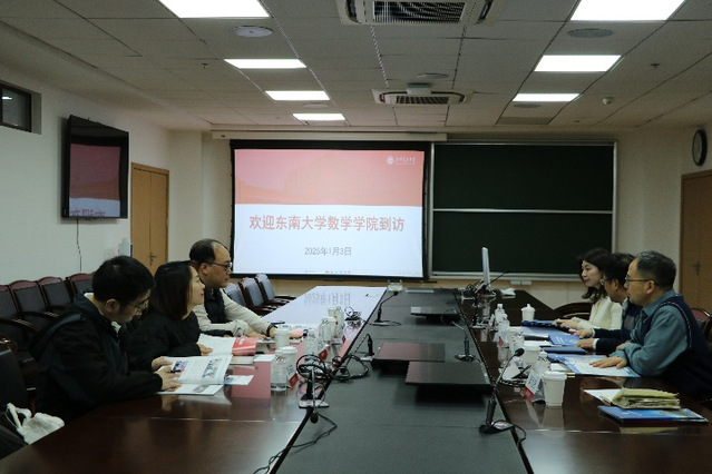 1月3日上午,新版跑狗图 虞文武院长一行赴上海交通大学数学科学学院调研。上海交通大学数学科学学院楼元教授代表学院对虞文武院长一行的来访表示热烈欢迎,楼院长详细介绍了学院历史,并分享了学科方向、师资队伍概况、科研项目、专业设置、学生就业等方面的具体情况。虞文武院长随后介绍了新版跑狗图 学科建设、科研平台、科研项目、特色研究方向、行业应用、人才培养等方面的情况。双方就学科建设、人才培养与引进、科研团队建设、研究生培养、师资建设等方面进行了深入交流和探讨。上海交通大学数学科学学院副院长谢峰、副院长朱辉钰、科研与学科办公室主任郭恒亮、东南大学副院长许文盈、院长助理王和、至善博士后刘洪喆等参加了座谈交流。