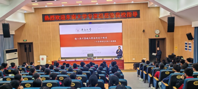 赵古田老师在河南大学附属中学给高一学子们带来题为《植入医疗器械与装备的设计制造》的专题科普讲座,医疗器械与装备,作为一个衡量一个国家科技发展和人民生活水平的重要标志,其设计与制造涉及材料、医学、生物学、工程学等学科,属于多学科交叉的领域。讲座为大家介绍在这些器械和装备设计过程中遇到的实际工程问题以及其背后所蕴含的物理学和数学问题。这场跨越学科边界的科普讲座,不仅让高一学子触摸到了前沿科技的脉搏,更在他们心中播下了“科技向善”的种子,也加深了同学们对东南大学的向往之情。