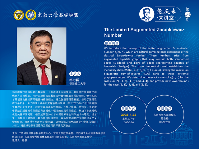 熊庆来大讲堂149期:2026.04.22 - 香港理工大学 - 祁力群