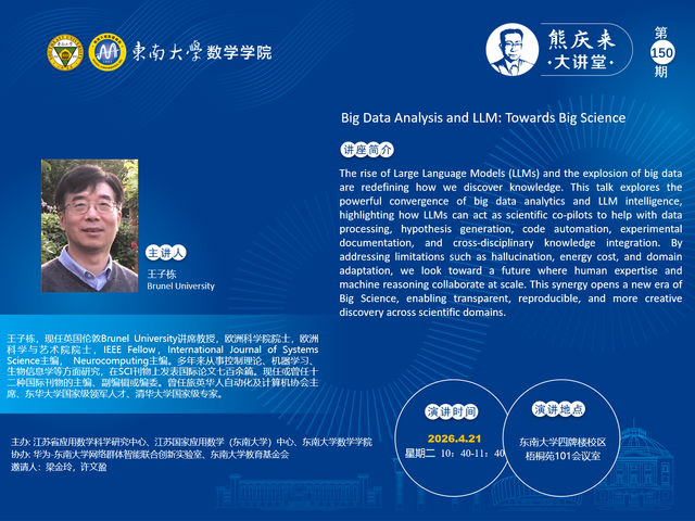 熊庆来大讲堂150期:2026.04.21 - Brunel University - 王子栋